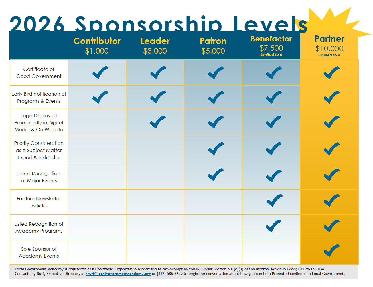 Your sponsorship publicly demonstrates that your organization supports good governance and is willing to invest in education and leadership development for municipal officials and public sector employees.